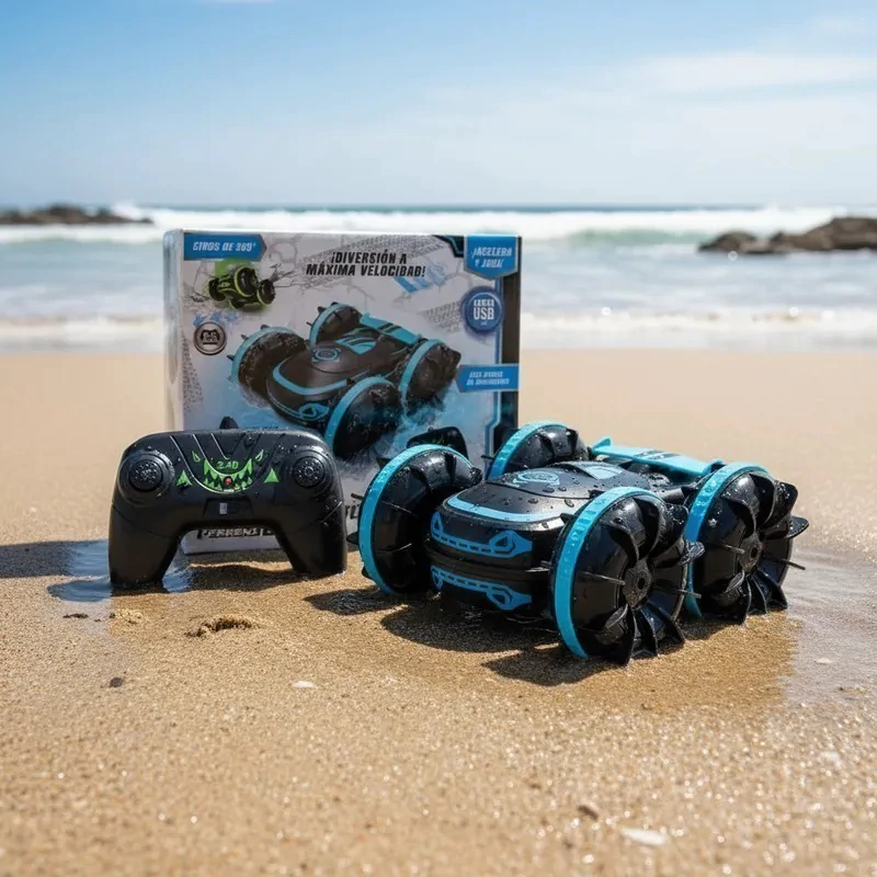 Este vehículo combina velocidad, luces y giros de 360° para brindar horas de diversión. Su diseño resistente permite usarlo tanto en tierra como en el agua, ¡sí, es sumergible!