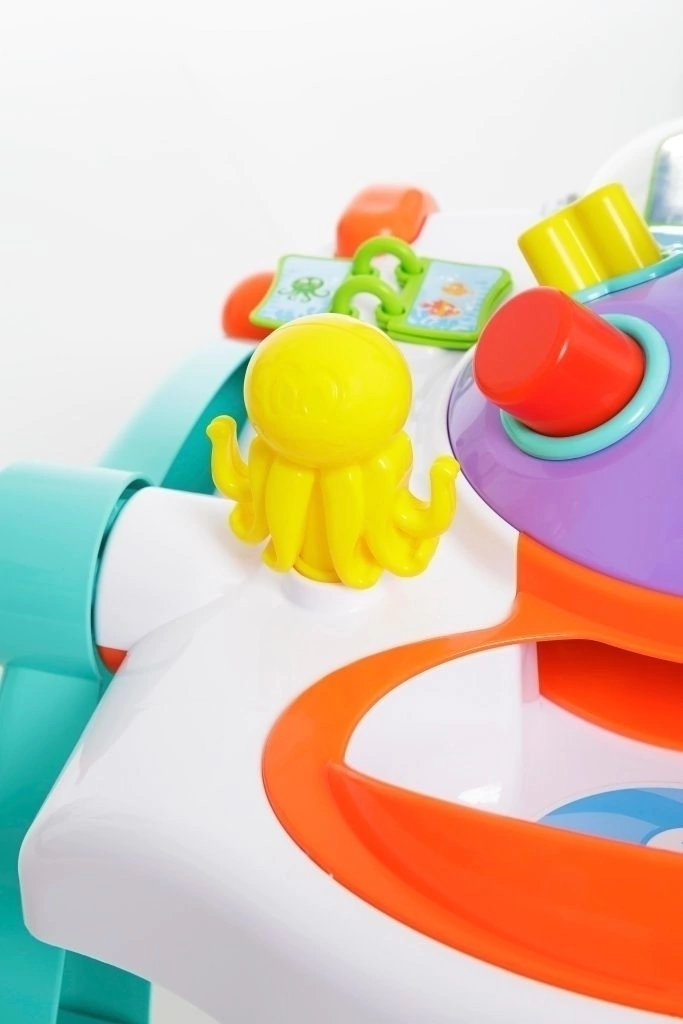 3 juguetes en 1! Andador, panel o mesa didáctica! Una esfera giratória, formas para encastrar, música y piezas divertidas en un juguete 3 en 1! Como andador, estimula a su hijo a dar los primeros pasos con seguridad para el bebe caminar. Como panel o mesa, divierte y enseña al bebé con actividades didácticas.