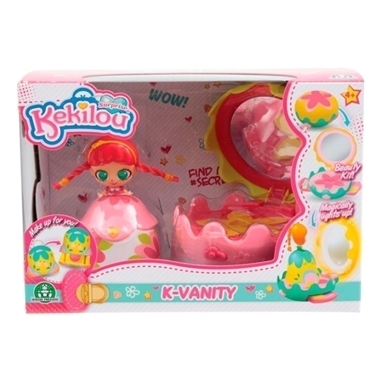 Espectacular muñeca kekilou con estuche de maquillaje !! 1 polvo de mágica con 2 cajones que contiene del maquillaje para ti y 2 aplicadores de maquillaje. Incluye 1 Mini bolsa que se transforma en Mini muñeca con del maquillaje para vos incluido en un compartimento secreto. Conecta tu muñeca en el polvo para iluminar el espejo. 1 folleto incluido.