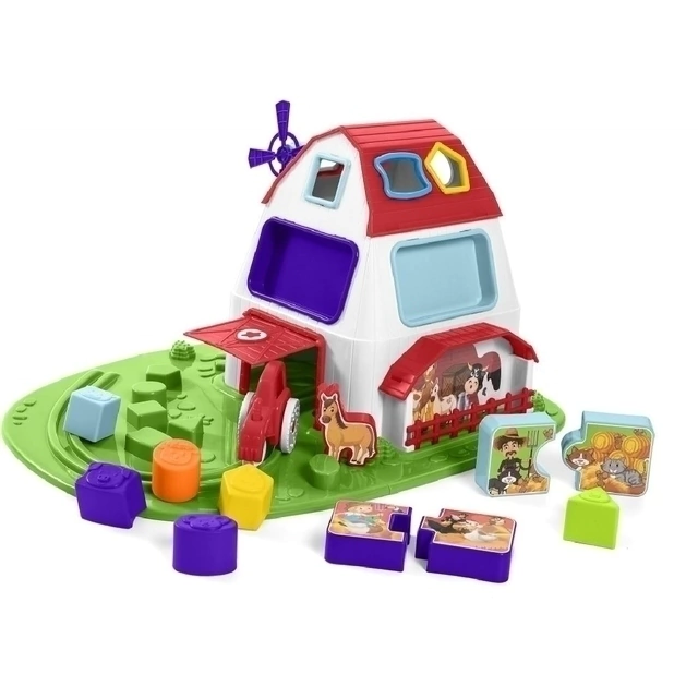 Varias piezas para encajar, desarrollar la coordinación motora, la creatividad y los conocimientos generales. En el granero, cada ventana muestra un escenario diferente con piezas de rompecabezas que se ajustan a las ventanas. Mientras tanto, en el establo, los animales miran al caballo caminar. Y el tractor sigue funcionando, atravesando el granero. El juego es aún más divertido con el misterioso portal, que viene con una abertura flexible para recoger las pequeñas piezas del interior del granero. Hay más de quince piezas desmontables para jugar.