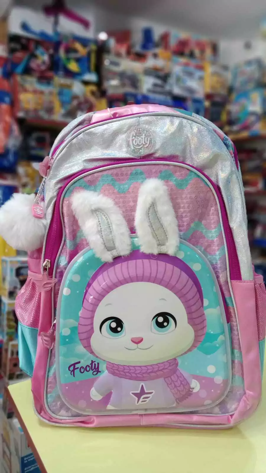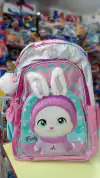 Frente con aplique de goma en forma de conejo. 4 compartimentos con cierre. ideal para uso diario con llavero de regalo. Tiras reforzadas. Manija de agarre. 2 Bolsillos laterales para botella. Luz Led a pila intercambiable. MEDIDAS APROXIMADAS Ancho: 34cm Alto: 45cm Profundidad:20cm
