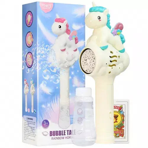 La Pistola Lanza Burbujas Unicornio Arcoíris es el juguete ideal para juegos al aire libre, fiestas y horas de diversión sin parar. Con luz incorporada, diseño adorable y tamaño perfecto (29 × 11 × 7 cm), crea un efecto mágico que encanta a chicos y grandes.